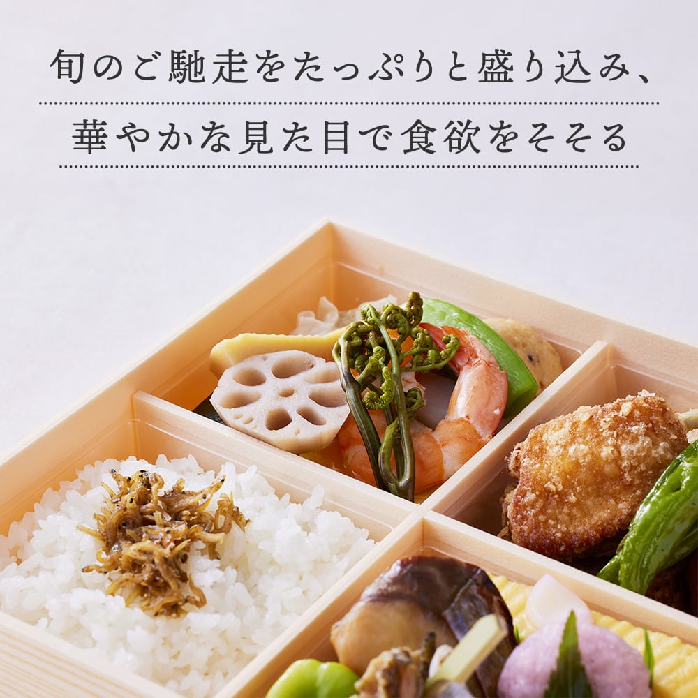 旬の食材を使ったお弁当です。 ※季節によって食材は異なります。